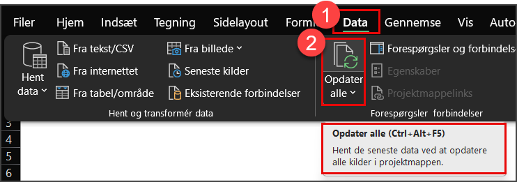 - I Excel versioner efter 04-11-2025 skal nye data fra EG Bolig hentes via Excel > Data > Opdatér alle.